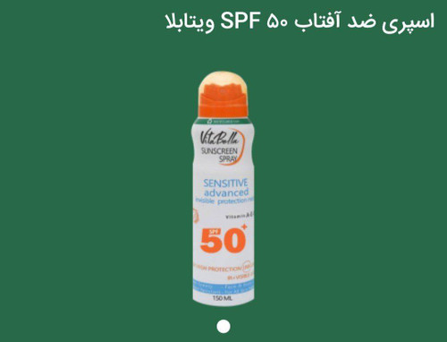 ✨️راهنمای محصول ✨️ _اسپری ضدآفتاب ویتابلا بدون رنگ _ضدآب و تعریق _فاقد چربی وروغن _فاقد پارابن و مواد حساسیت زا _دارای SPF30 _محافظت از پوست در مقابل اشعه های lRوUVBوUVAو نور مرئی _بدون ایجاد چسبندگی _مناسب استفاده قبل از قرار گرفتن در زیر نور خورشید _قابلیت خشک شدن سریع _ایده آل برای پوست صورت وبدن _مناسب برای پوستهای حساس وپوستهای چرب و آکنه ای